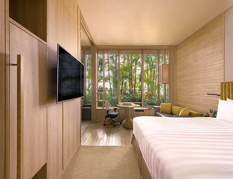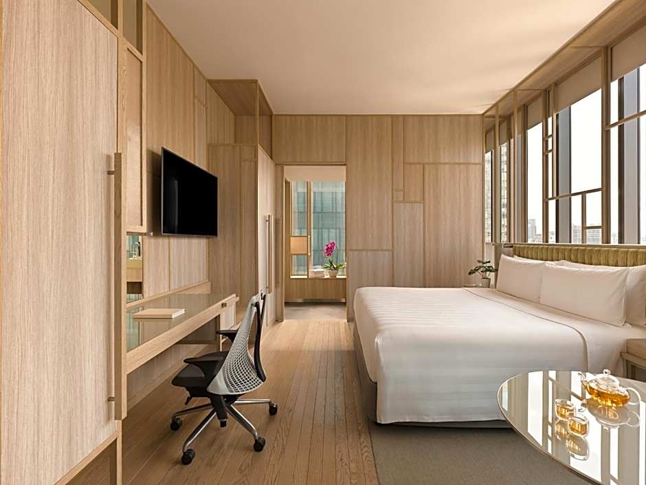This luxurious room features floor-to-ceiling windows that open up to views of the city or Hong Lim Park. The room is fitted with a Nespresso coffee machine, 55-inch flat-screen cable TV and executive lounge access. Bathtubs are available in select rooms.